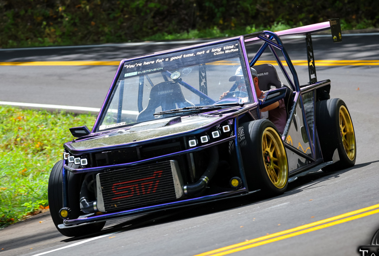 Scratch built chassis with Fully Built STI drivetrain. IAG Closed Deck 2.5, 6 speed 57mm turbo. Flex Fuel 600whp. Street Legal crowd pleaser. I use it for driving, shows, drag racing, hauling, towing, just about everything.