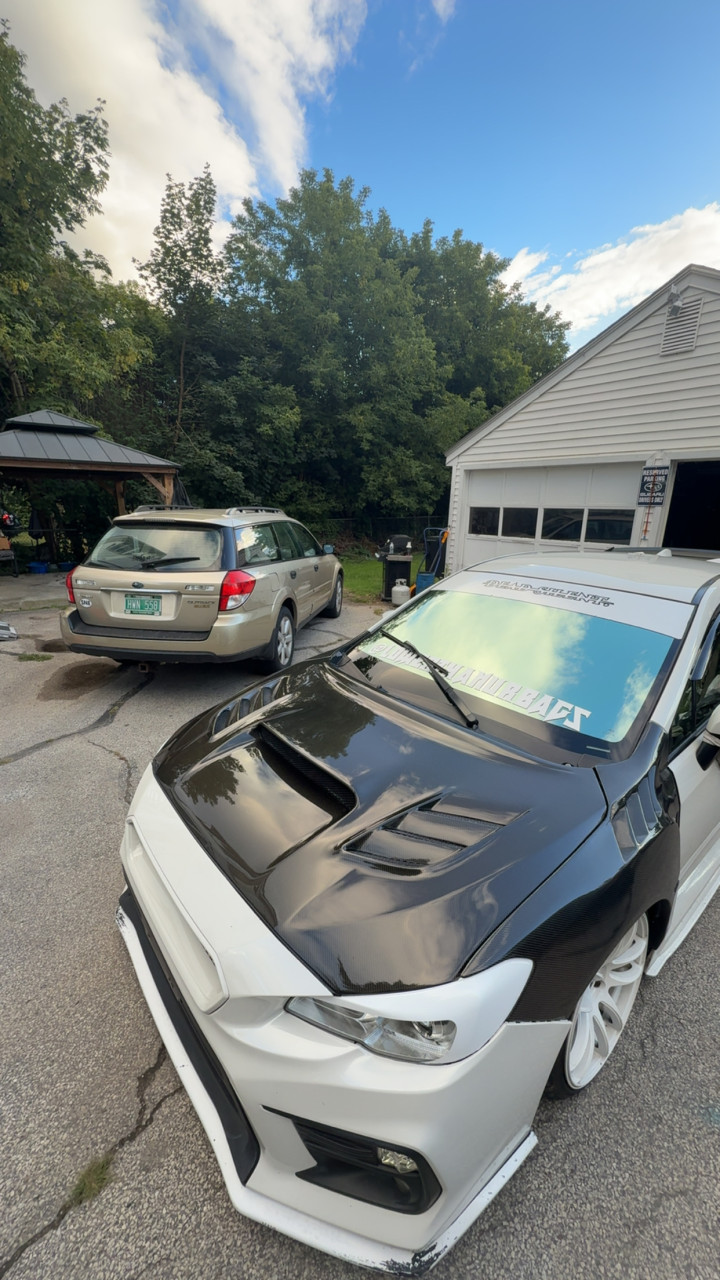 2020 wrx slammed on coils, 5 degrees of camber up front 2.5 in the back running 18x8.5 avid wheels, 5% tint on the side windows, stage 2+ tuned with a custom burble map, turboxs highflow jpipe to a full 3in stainless straught pipe to 3.5 inch quad tips, (will shoot flames on occasion) cars running an e30 mix currently underboosting & still holding 19psi to redline. white on white look isn’t very common i think it would be a great addition to the show!