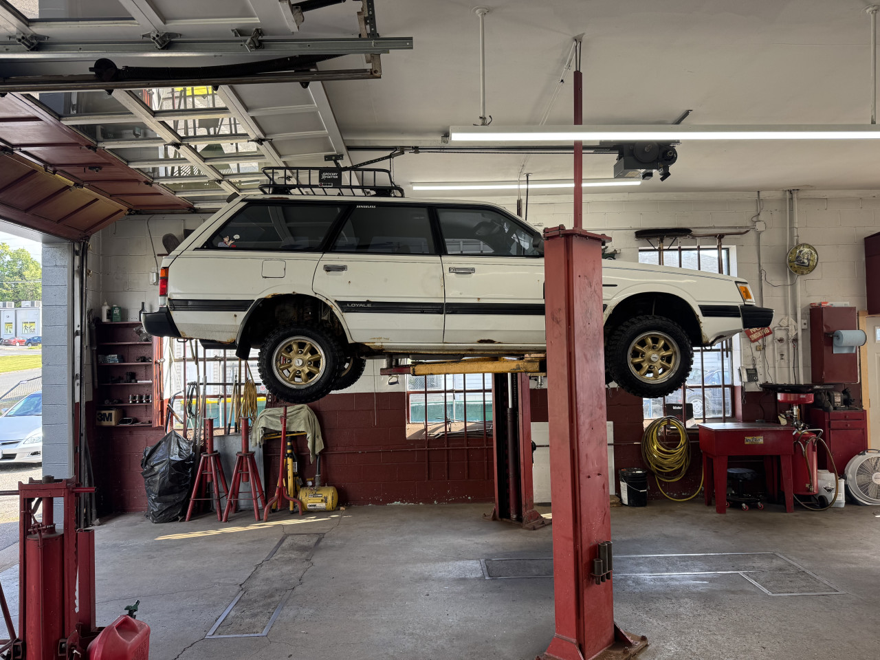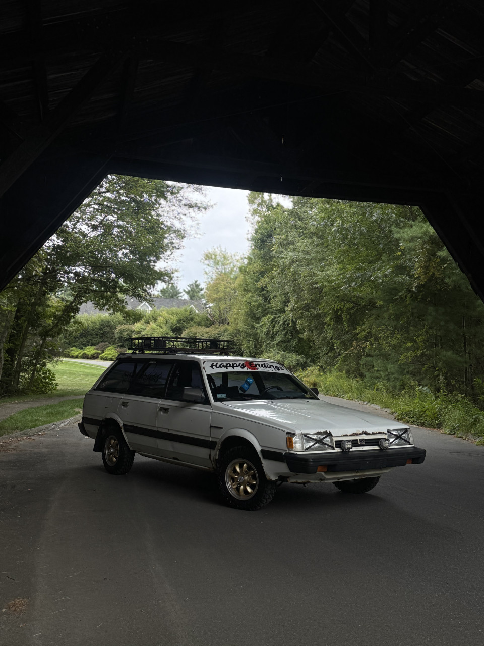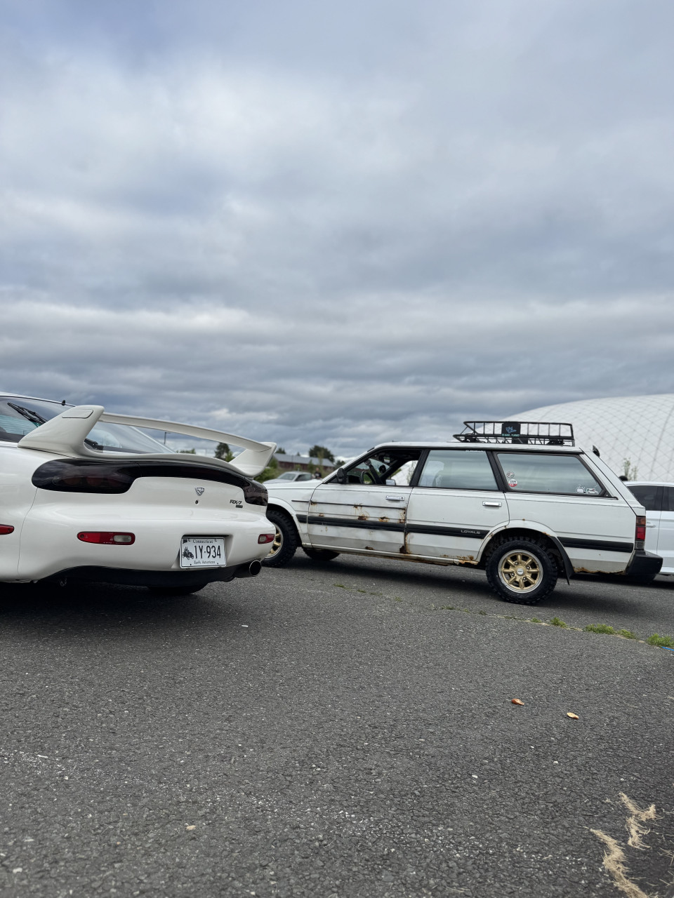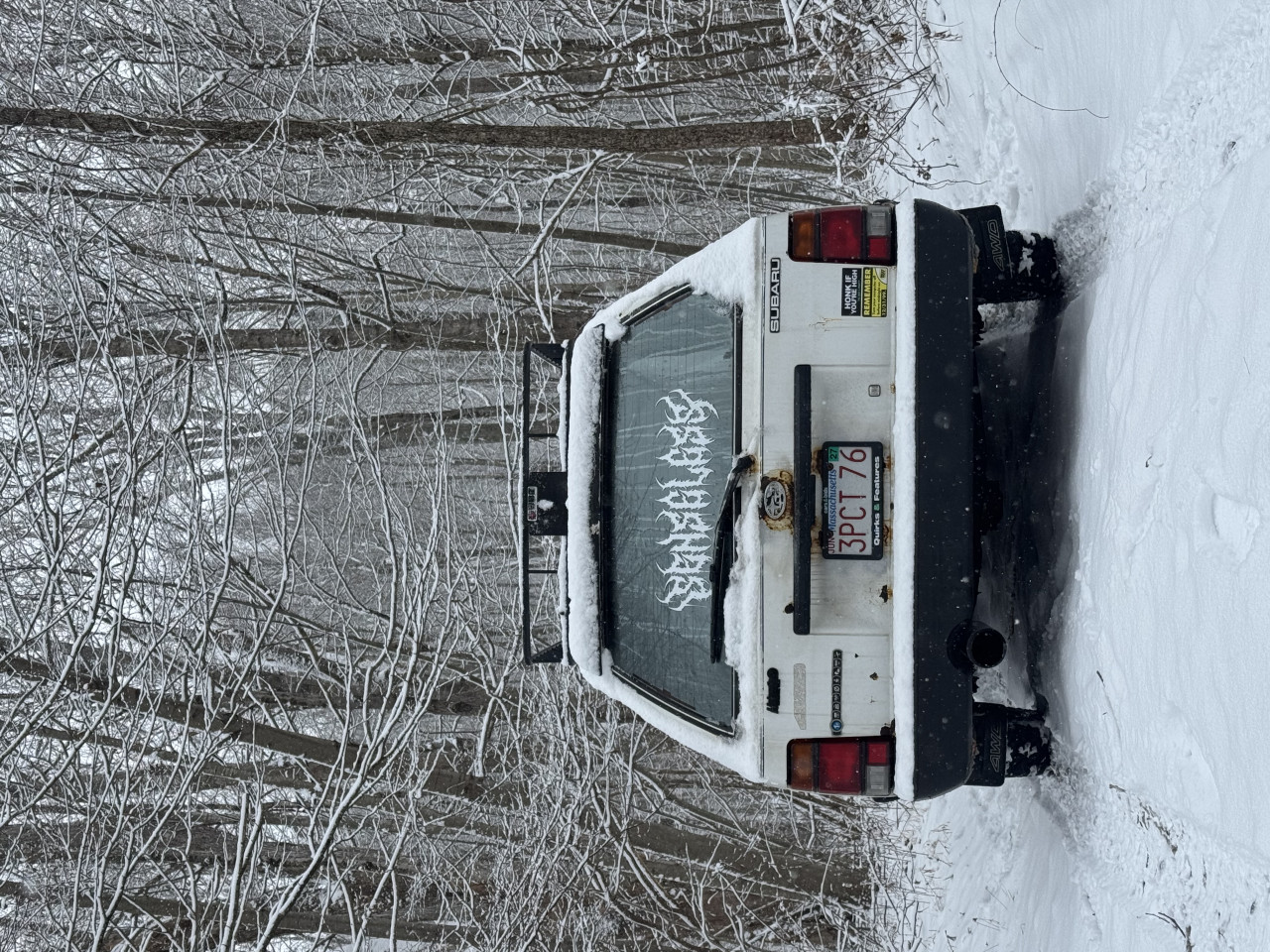 This is my 1992 Subaru Loyale Wagon 1.8 EA82 5 speed manual with push button 4wd. Rocking some 4x140 OEM Catalog Enkeis from the 80s wrapped in mud tires. This thing is far from clean but the rust gives it character. Originally a California car its been across the country and thing still keeps on kicking. Everywhere it goes it turns heads because no one knows what it is. Other things to note is a 3 inch straight pipe, chrome tint, and a very blue factory interior. This car got a lot of attention at Wicked big meet last year and I hope to be in the show again!