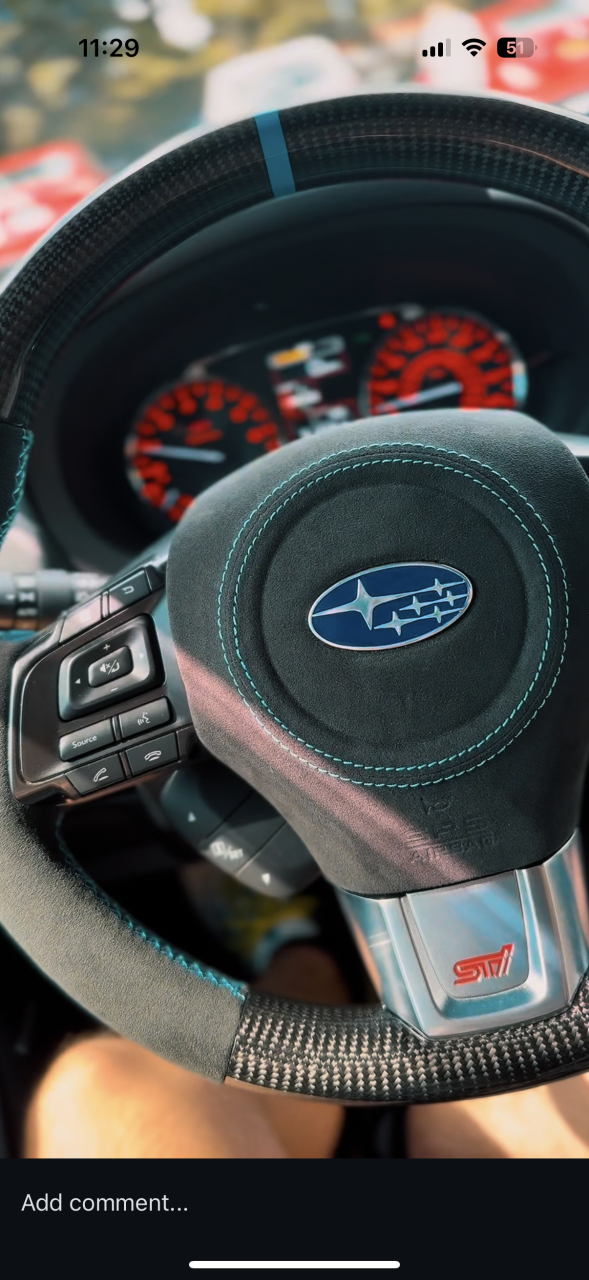 - JDMuscle carbon fiber/alcantera custom steering wheel, paint matched stitching and center stripe. With custom alcantera airbag cover