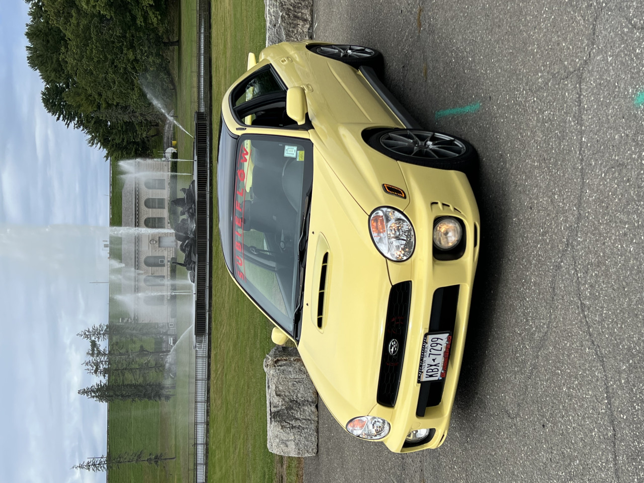 Cobb down pipe,spec d exhaust apt cold air intake blaze yellow original car color Bremer Kraft wheels , rf1 drilled and slotted rotors